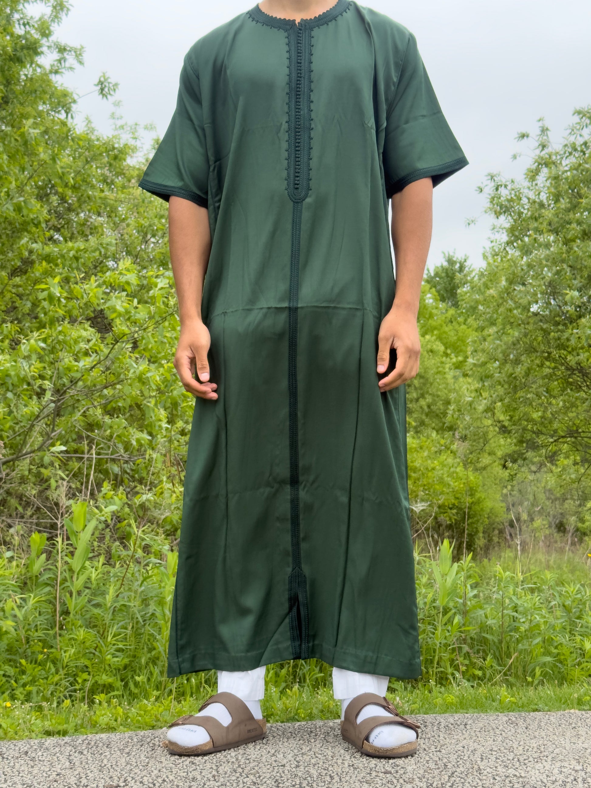 Bold yet grounded, the Emerald Green Kaftan channels timeless sophistication with a vibrant twist. Made from our signature 80/20 linen-polyester blend, it’s lightweight, breathable, and tailored for warm-weather elegance. Hand-finished stitching and a hidden zip closure offer comfort without compromising on craftsmanship. Designed with one side pocket and a side slit for easy access to inner garments. Available exclusively in short sleeves, this kaftan brings a refreshing pop of color to any setting — perfect for summer gatherings, Eid, or simply standing out with grace.